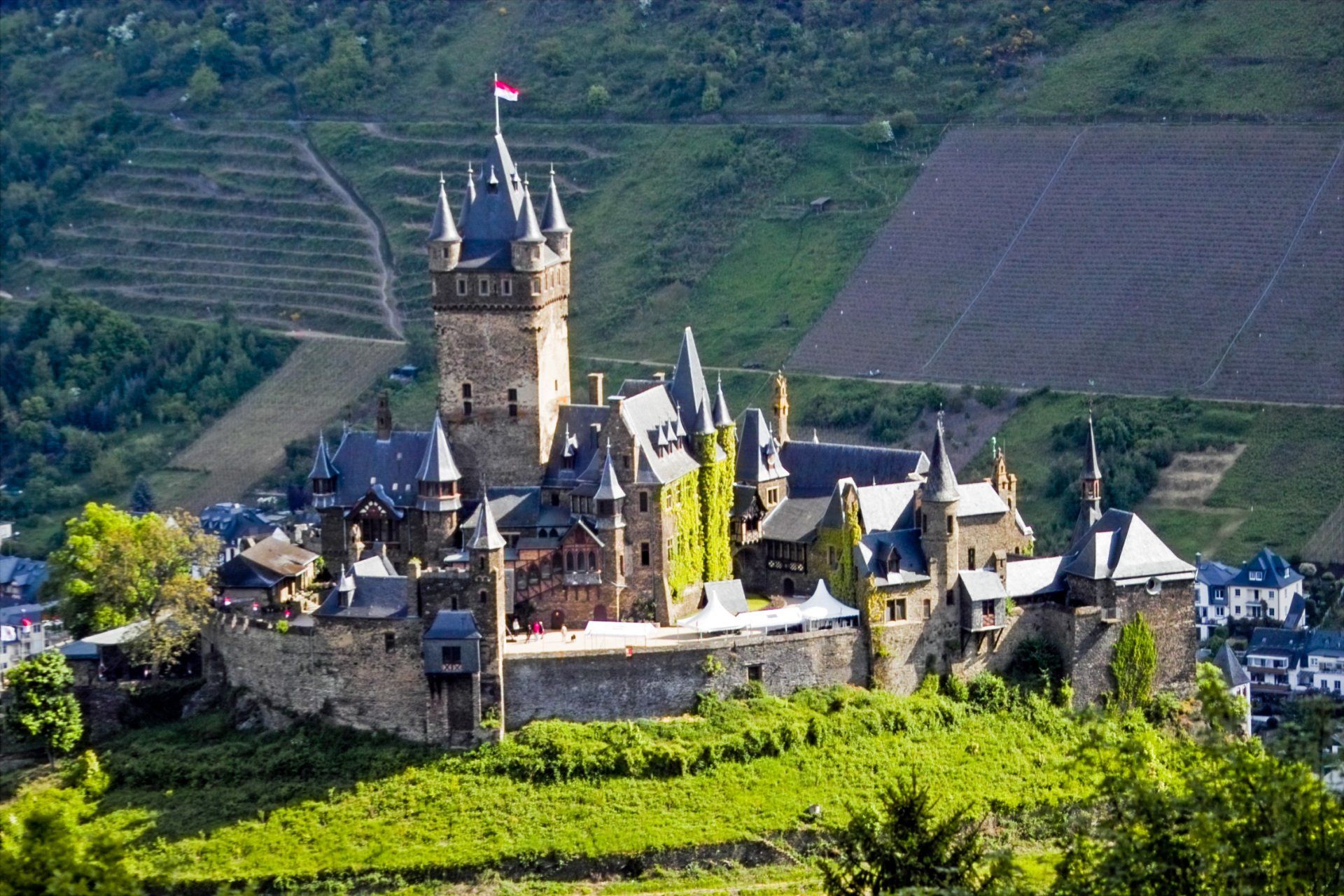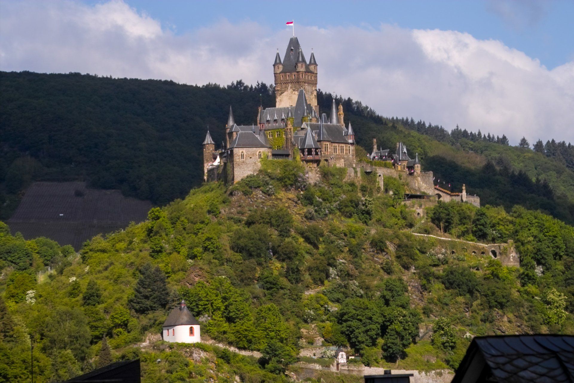 Rheinland-Pfalz ist Nachbarland zu Süd-Hessen und Nord-Baden, wo Klaus 46 Jahre gewohnt hat (1955-2001), deshalb war Klaus auch entsprechend oft in dieser Region (meist mit Tagesausflügen). Eine Auswahl der besuchten Orte und Sehenswürdigkeiten nach Kreisen sortiert. Landkreis Ahrweiler: Wassenach mit dem Laacher See. Landkreis Cochem-Zell: Cochem mit der Reichsburg. Landkreis Mayen-Koblenz: Andernach mit dem weltweit höchsten Kaltwasser-Geysir, Bendorf-Sayn mit dem Garten der Schmetterlinge im Schlosspark Sayn, Pillig mit der Burg Pyrmont, Wierschem mit der Burg Eltz. Landkreis Rhein-Lahn: Bad Ems an der Lahn - hier haben wir ein 3D-Strassenbild von Edgar Müller bestaunt (der Künstler war selbst anwesend, weil er das Werk gerade fertig gestellt hatte). Landkreis Südliche Weinstraße: Schweigen-Rettenbach mit dem Weintor. Landkreis Südwestpfalz: Erlenbach mit der Burg Berwartstein. Landkreis Vulkaneifel: Daun-Gemünden mit dem Gemündener Maar, Gillenfeld mit dem Weinfelder Maar oder Pulvermaar, Schalkenmehren mit dem Schalkenmehrer Maar und dem Totenmaar, Strohn mit dem Vulkanhaus und der Lavabombe, Wallenborn mit dem Kaltwasser-Geysir "Brubbel". Stadtkreis Kaiserslautern mit der Landesgartenschau 2000. Stadtkreis Koblenz mit dem Deutschen Eck am Zusammenfluss von Mosel und Rhein. Stadtkreis Speyer mit dem Dom und dem Technik-Museum.
