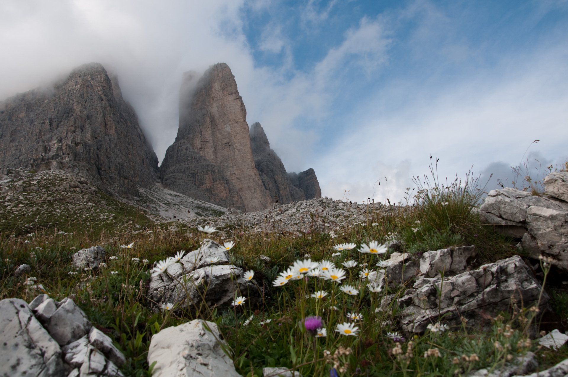 Naturpark "Drei Zinnen" diese drei markanten Berge liegen genau auf der Grenze zu Südtirol , die Zufahrt ist auf der Seite von Venetien, auf der wir auch entlang dieser Berge gewandert sind - Klaus hatte dies bereits