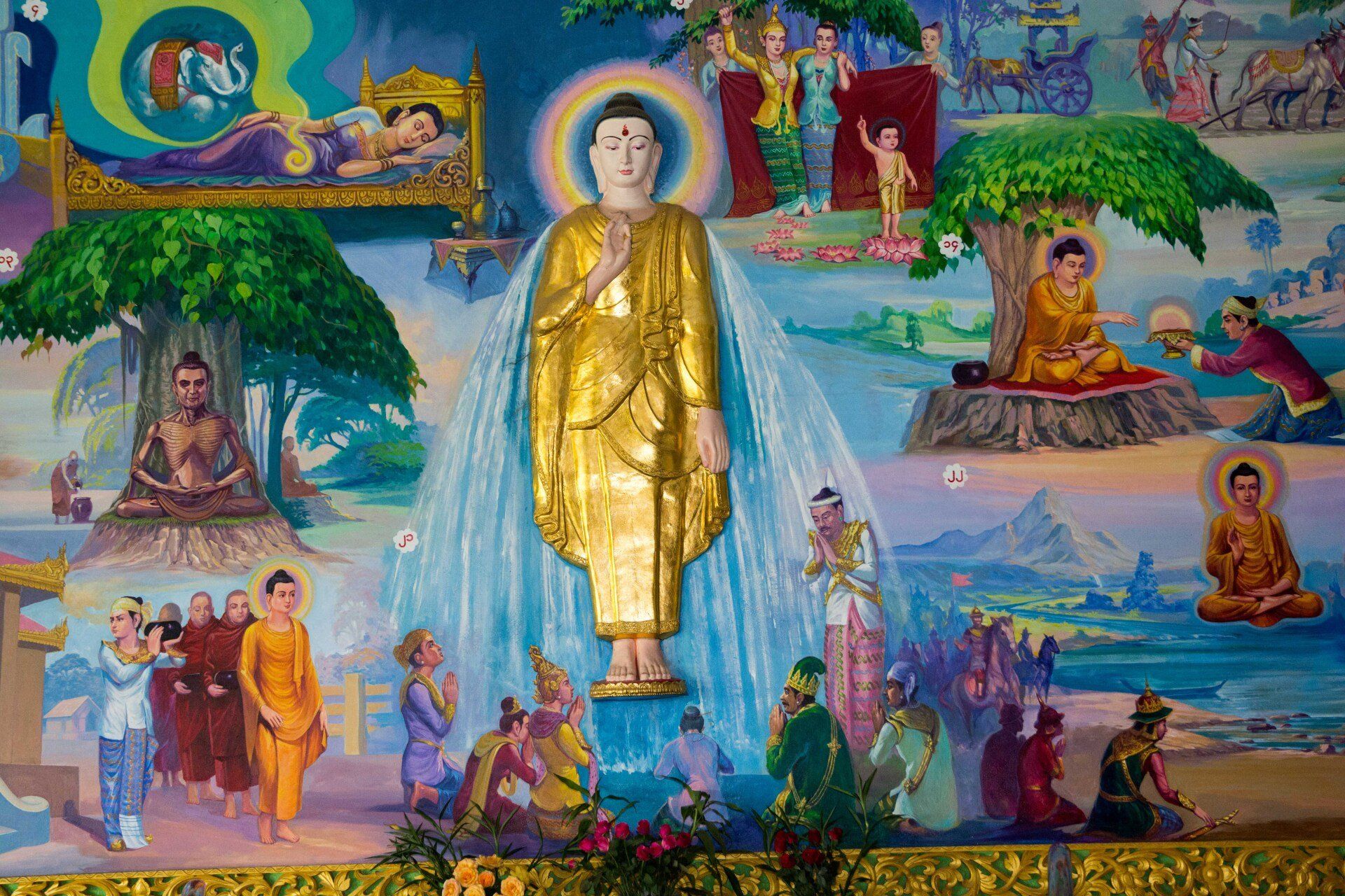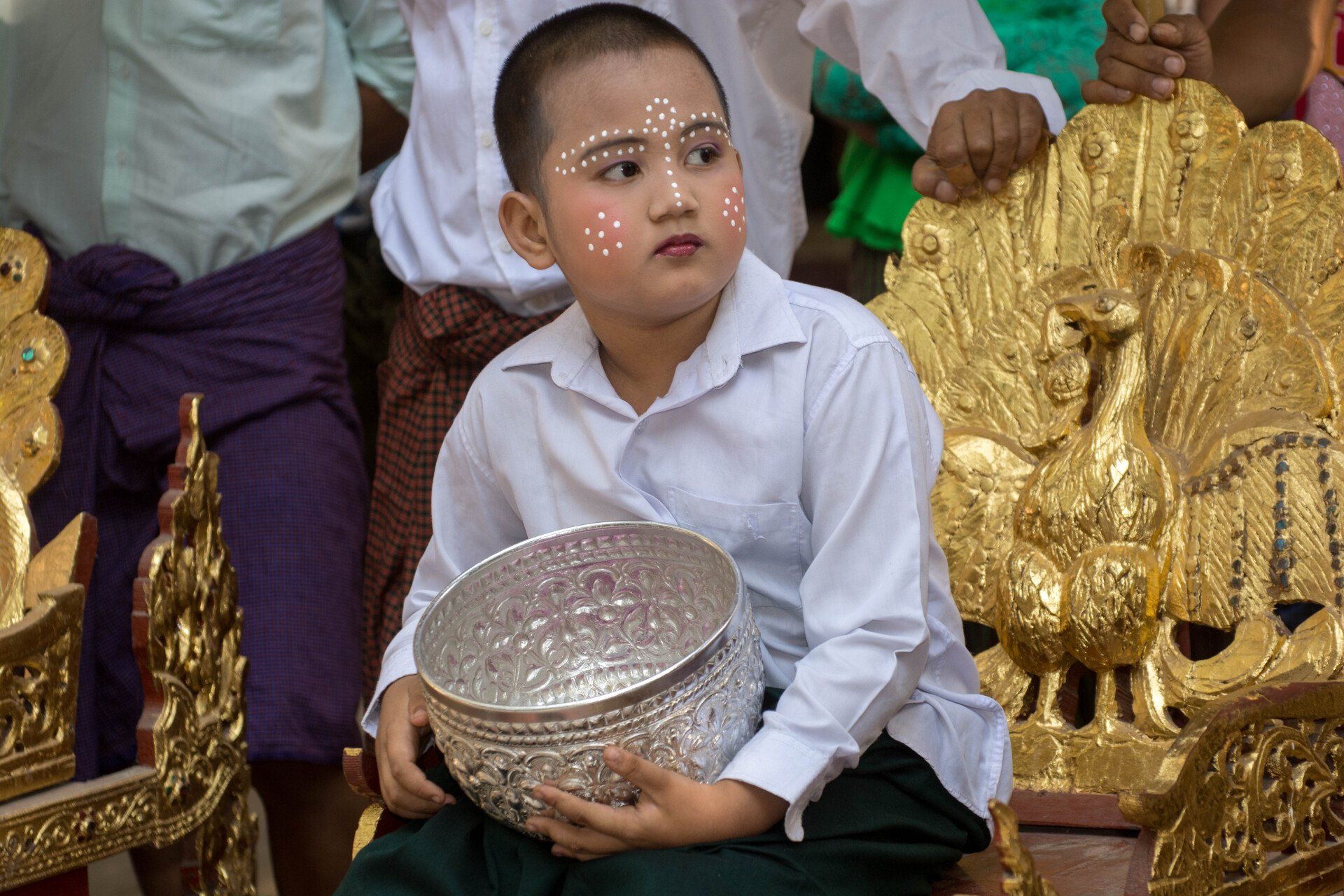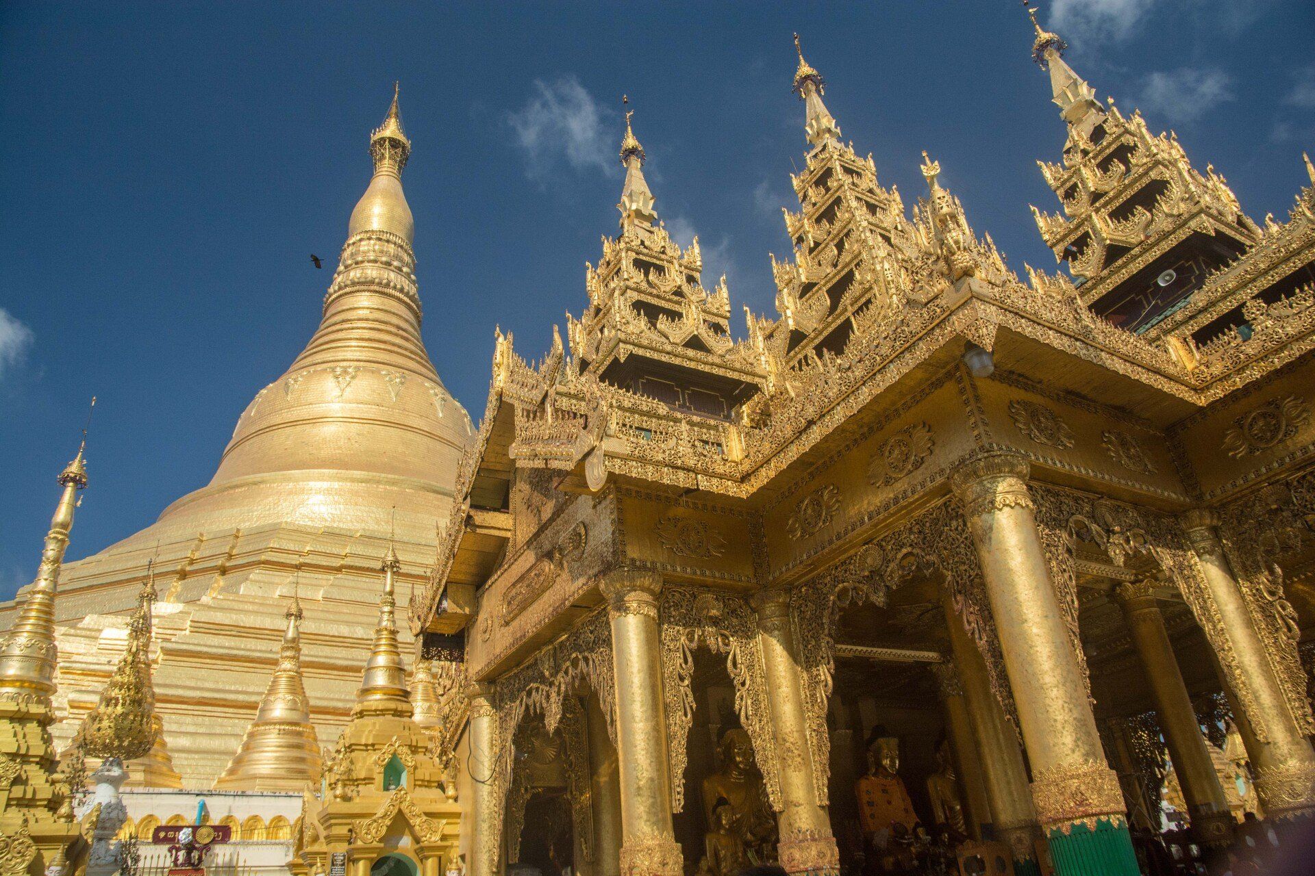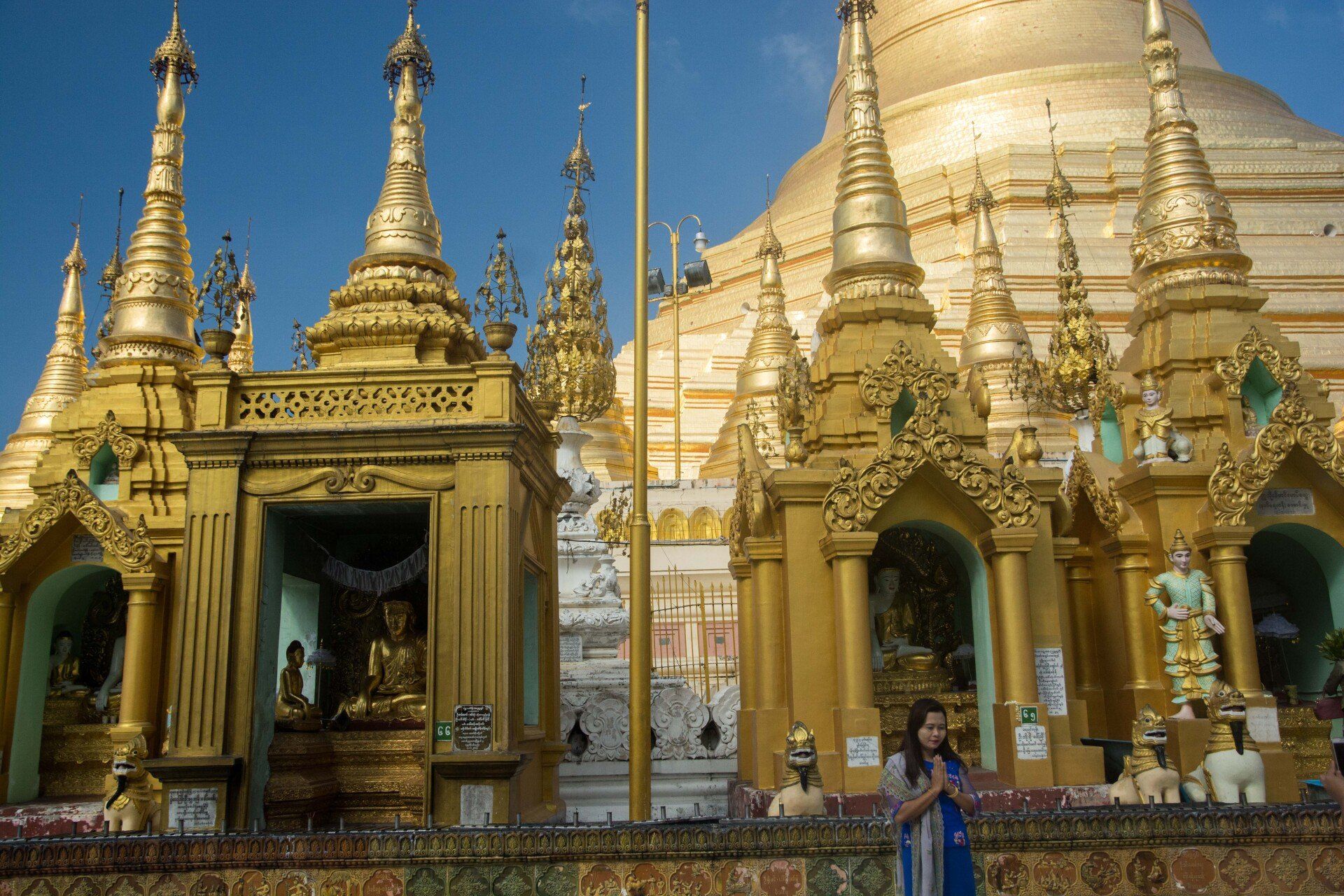 In Myanmar (früherer Name Birma oder Burma) waren wir 2017 im Rahmen unserer Kreuzfahrt von Singapur nach Dubai. Besucht haben wir Yangon (auch Rangoon oder Rangun genannt) ist nicht die Hauptstadt aber das wirtschaftliche Zentrum des Landes. Gesehen haben wir die Shwedagon Pagode (ein Traum aus Gold und Edelsteinen), den liegenden Buddha "Chaukhtatgyi Paya", den Kandawgyi See und das Novizen-Fest im Kalaywa Kloster.