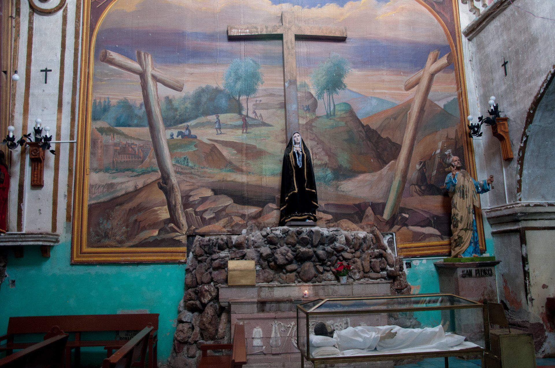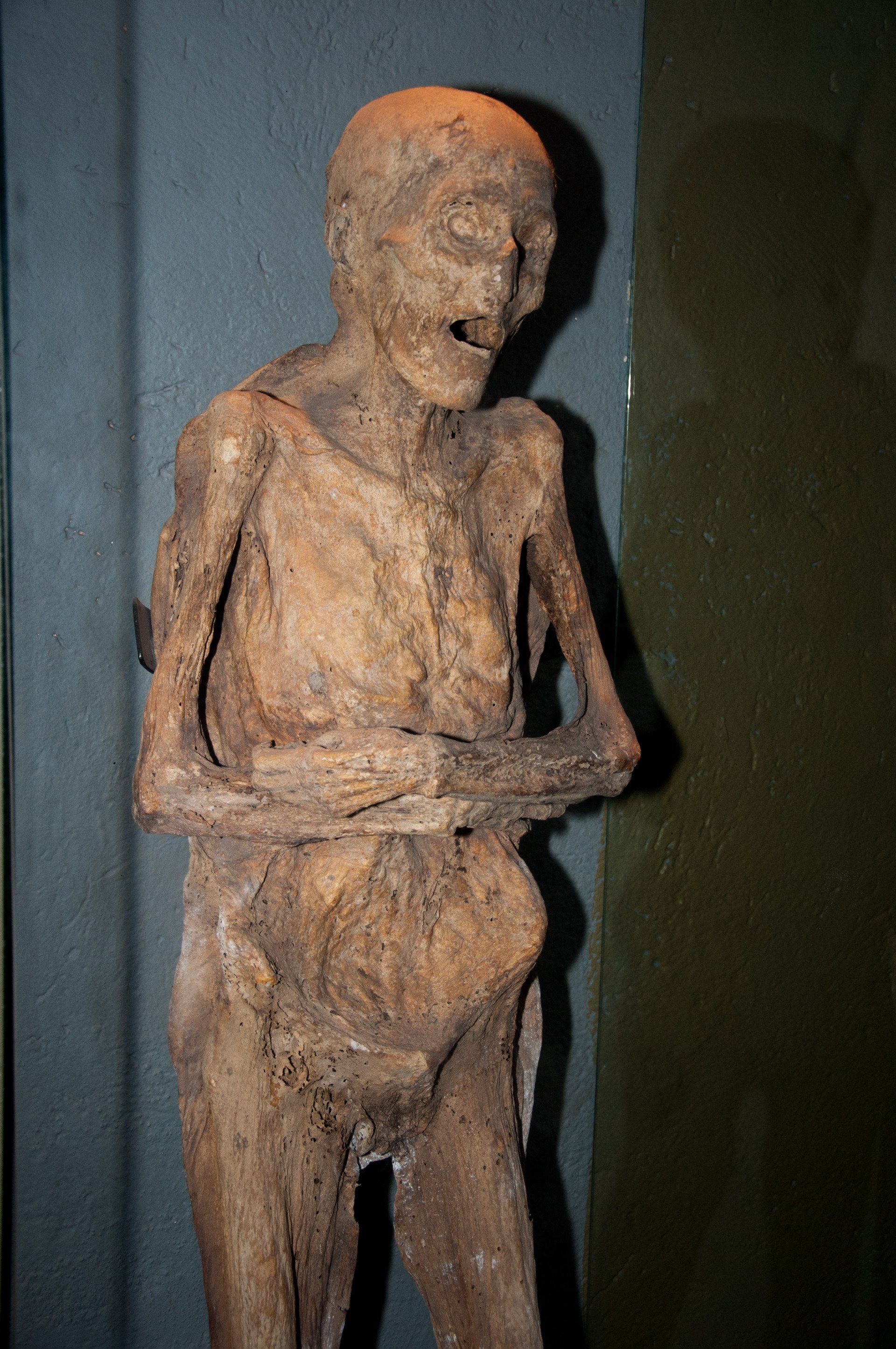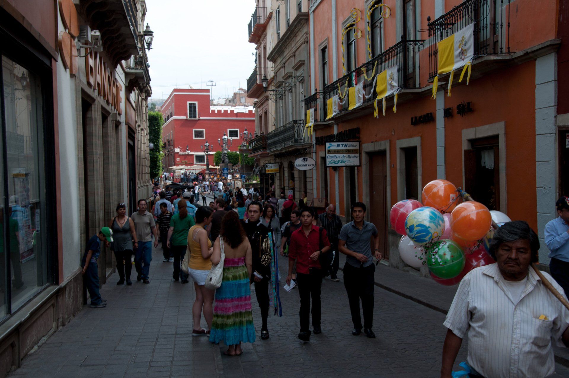 Guanajuato. Wir waren kurz vor dem Papst hier, es war schon alles auf den Besuch vorbereitet (Plakate, Flaggen). Hier war früher das Weltzentrum des Silber-Bergbaues (zwischen 1557 und 1810 wurden hier 75% des Weltförderung aus dem Boden geholt), deshalb sieht es unter der Stadt und in den umliegenden Bergen aus wie in einem Maulwurf-Bau. Die Stadt hat die Stollen genutzt um Straßen hindurch zu bauen. Die vielen bunten Häuser geben der Stadt ein besonderes Flair. Ein besonderes Museum is das "Museo de las Momias de Guanajuatro" (Museum der Mumien). Weiterhin besuchten wir die