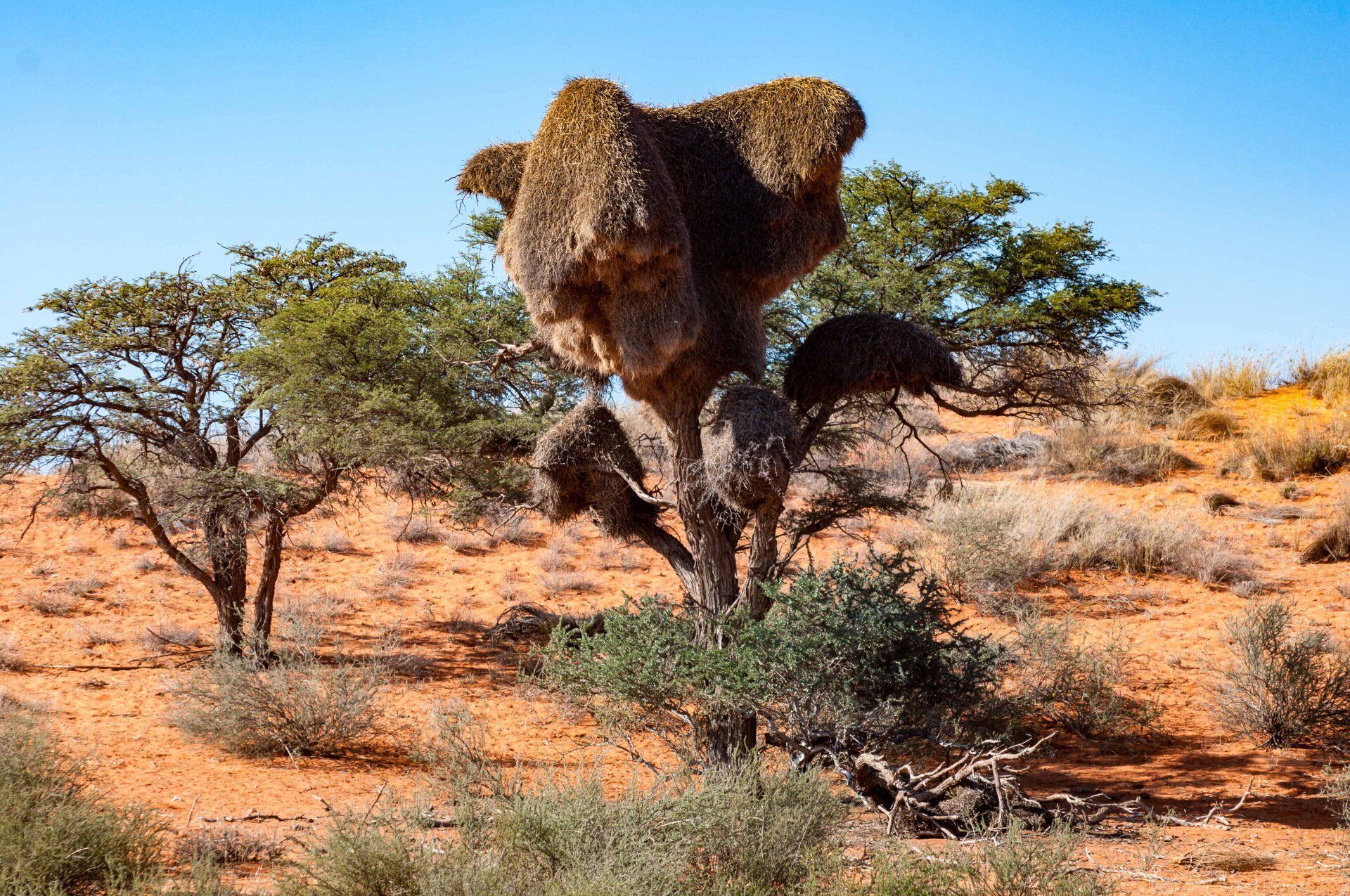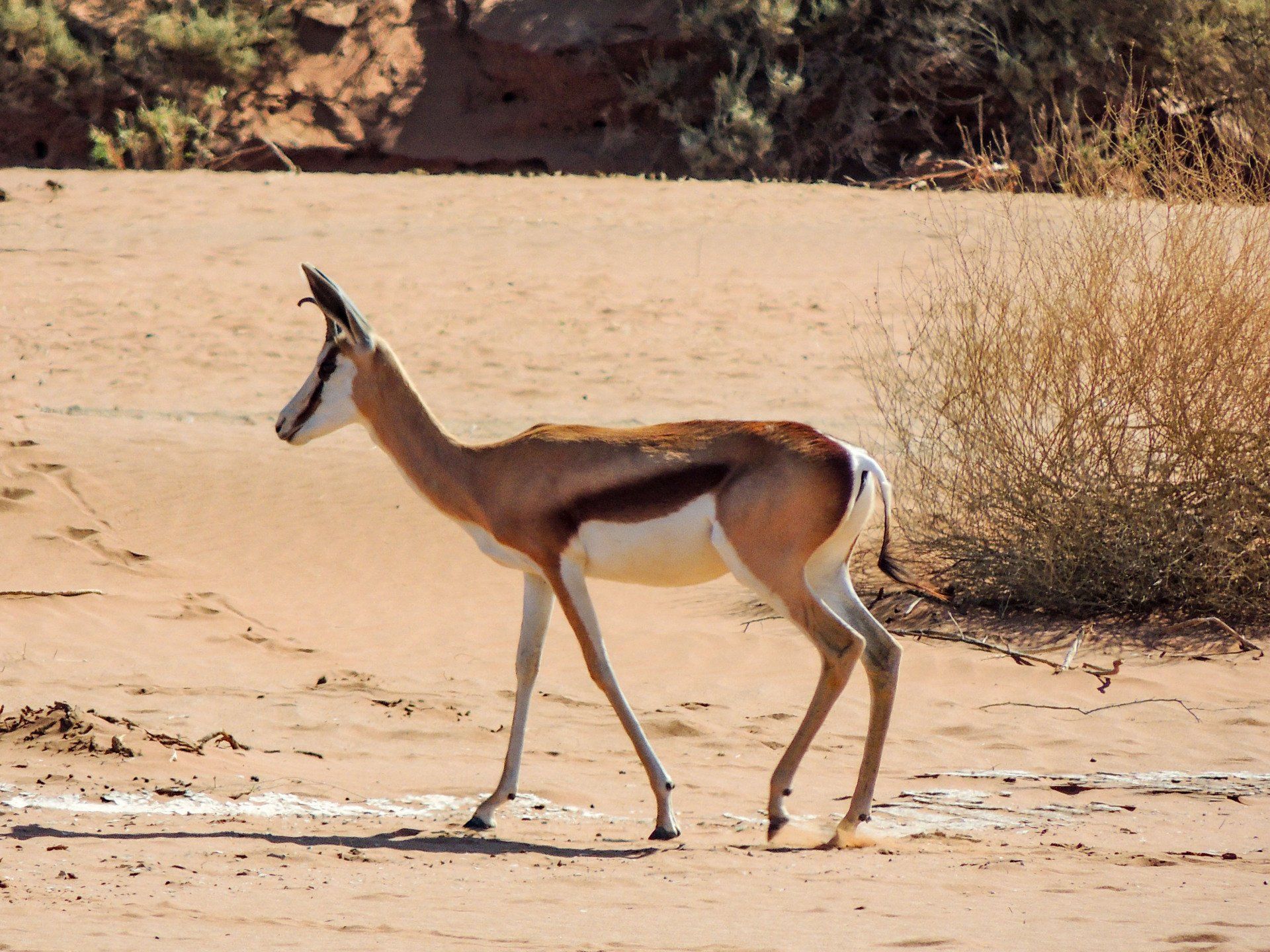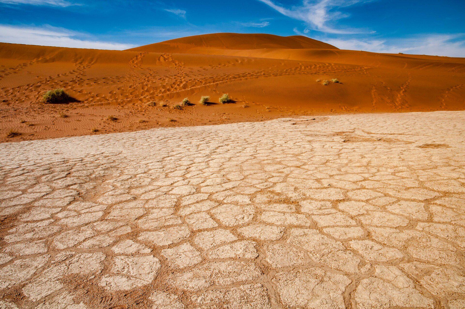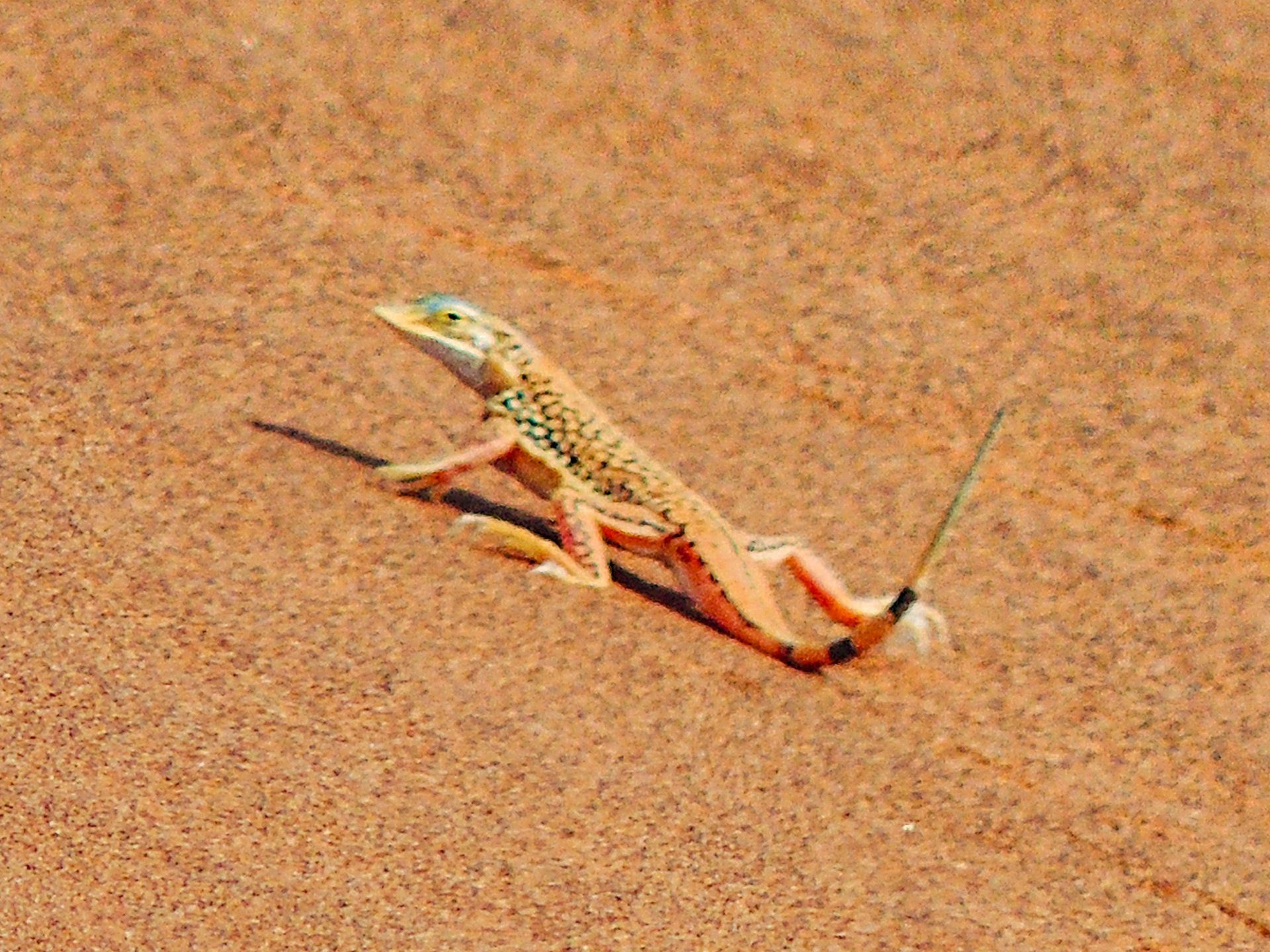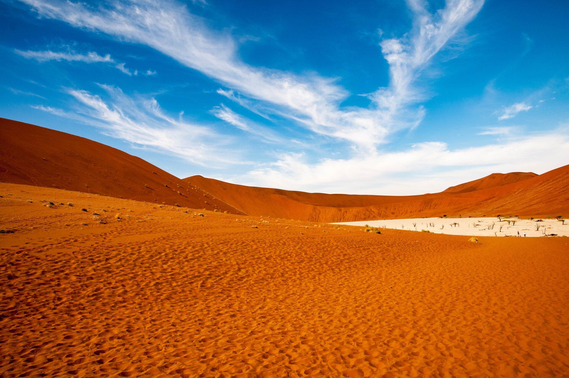 Wir waren 2013 auf einer Gruppen-Rundreise durch Namibia in dieser Region. Es war nur ein Tag, aber was für einer! Es gab nur ein Thema, die Namib und das Sossusvlei mit seinen großen roten Sanddünen. Sossus bedeutet in der Sprache der Nama "Blinder Fluss", weil der Tsuchap, der nur in regenreichen Jahren etwas Wasser führt, dann in den Dünen bei Sossusvlei versickert, 50 km bevor er den Atlantik erreichen könnte. Er hinterlässt nur trockene weiße Salz-Ton-Pfannen genannt "Vlei", die zusammen mit den roten Dünen, blauem Himmel und den abgestorbenen Bäumen ein spezielles Bild liefert (wohl das bekannteste Bild aus der Namib). Die Düne 45 darf von den Touristen bestiegen werden, sie heisst so weil sie 45 km vom Beginn der Zufahrt entfernt ist. Erstaunlich war auch die Fauna die in dieser Wüste anzutreffen war: Spiesbock, Angola-Springbock, Namib-Gecko, Webervögel, Riesen-Trappe, Wüstenmaus und eine Raupe haben wir gesehen, aber dies sind nicht die Einzigen. Der ganze Bereich dieses Tages gehört zum Naukluft-Namib-Nationalpark und das gesamte Namib-Sandmeer inklusive dem Sossusvlei wurde 3 Wochen nach unserem Besuch in das UNESCO Weltnaturerbe der Menschheit aufgenommen. Übernachtet hatten wir ab Ende des Tages in Sesriem. Am nächsten Morgen ging es weiter durch die Tirasberge in die südlichste Region Namibias, nach IIKaras. Auf der Rückfahrt nach Norden von der Region IIKaras kommend fuhren wir relativ nahe der Grenze zu Botswana durch die Kalahari in die Region Hardap bis zu unserer nächsten Übernachtung im Kalahari Farmhouse in Stampriet.