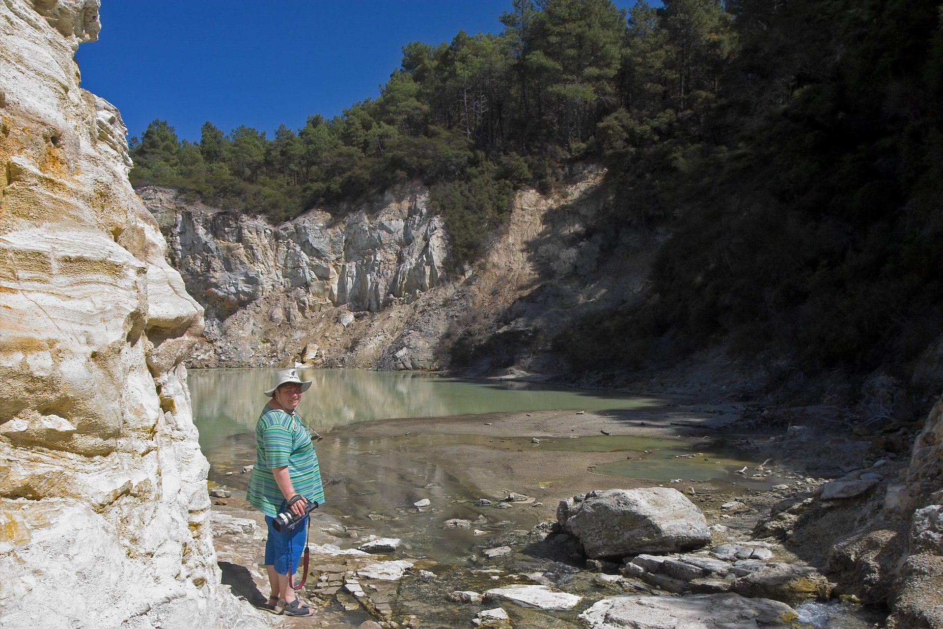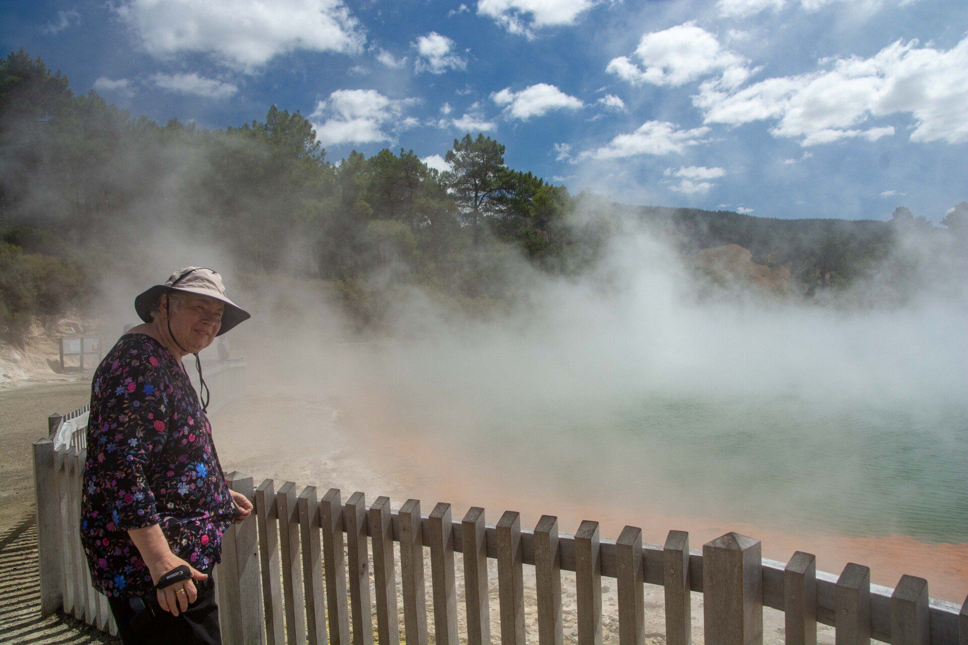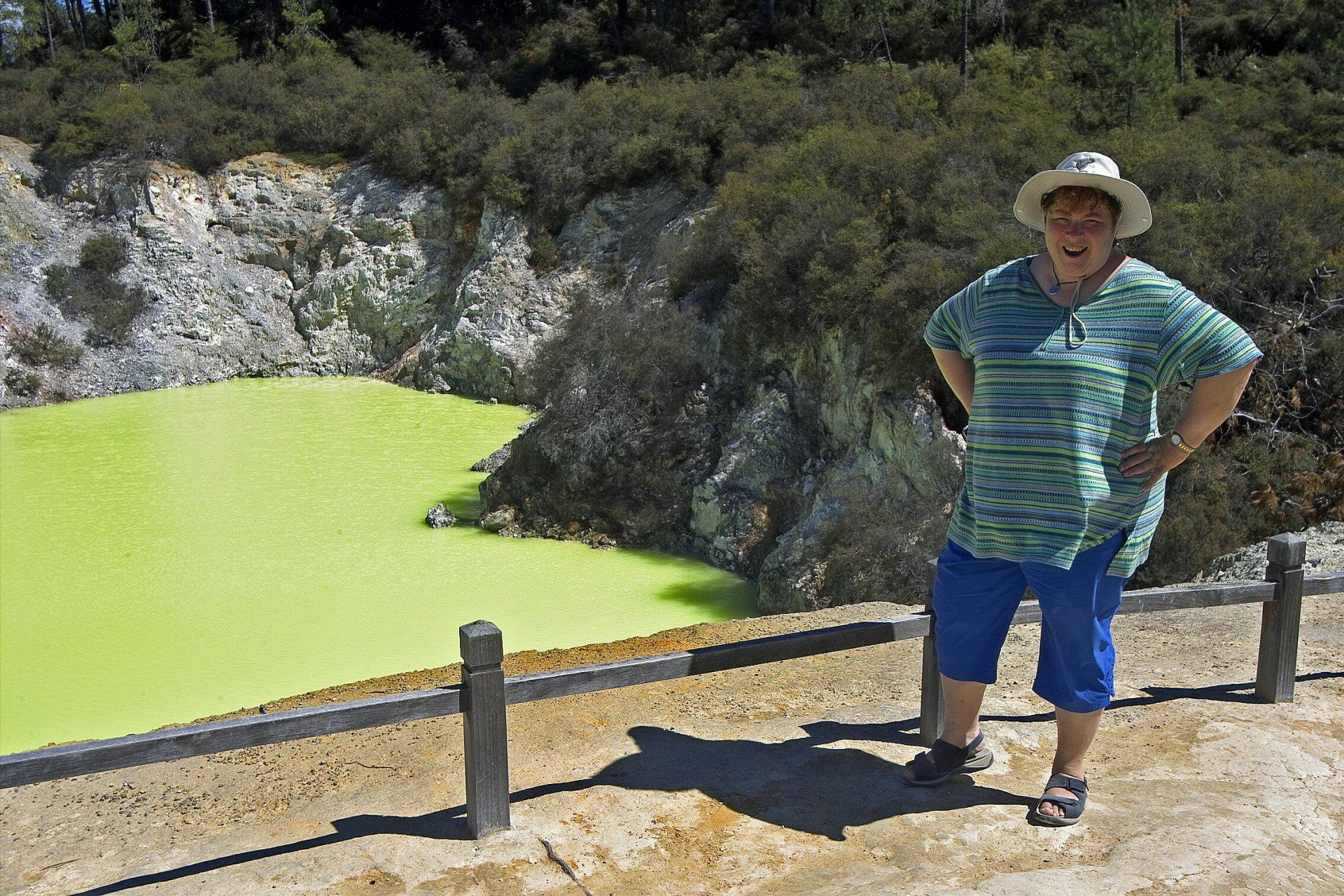 Wai-O-Tapu Thermal Wonderland. 2005 kamen wir mit einer Freundin aus der Region Bay of Plenty und 2019 aus Region Taranaki in diese Region. Die Fotos sind von Süden nach Norden sortiert. Im Süden der Region ist man im