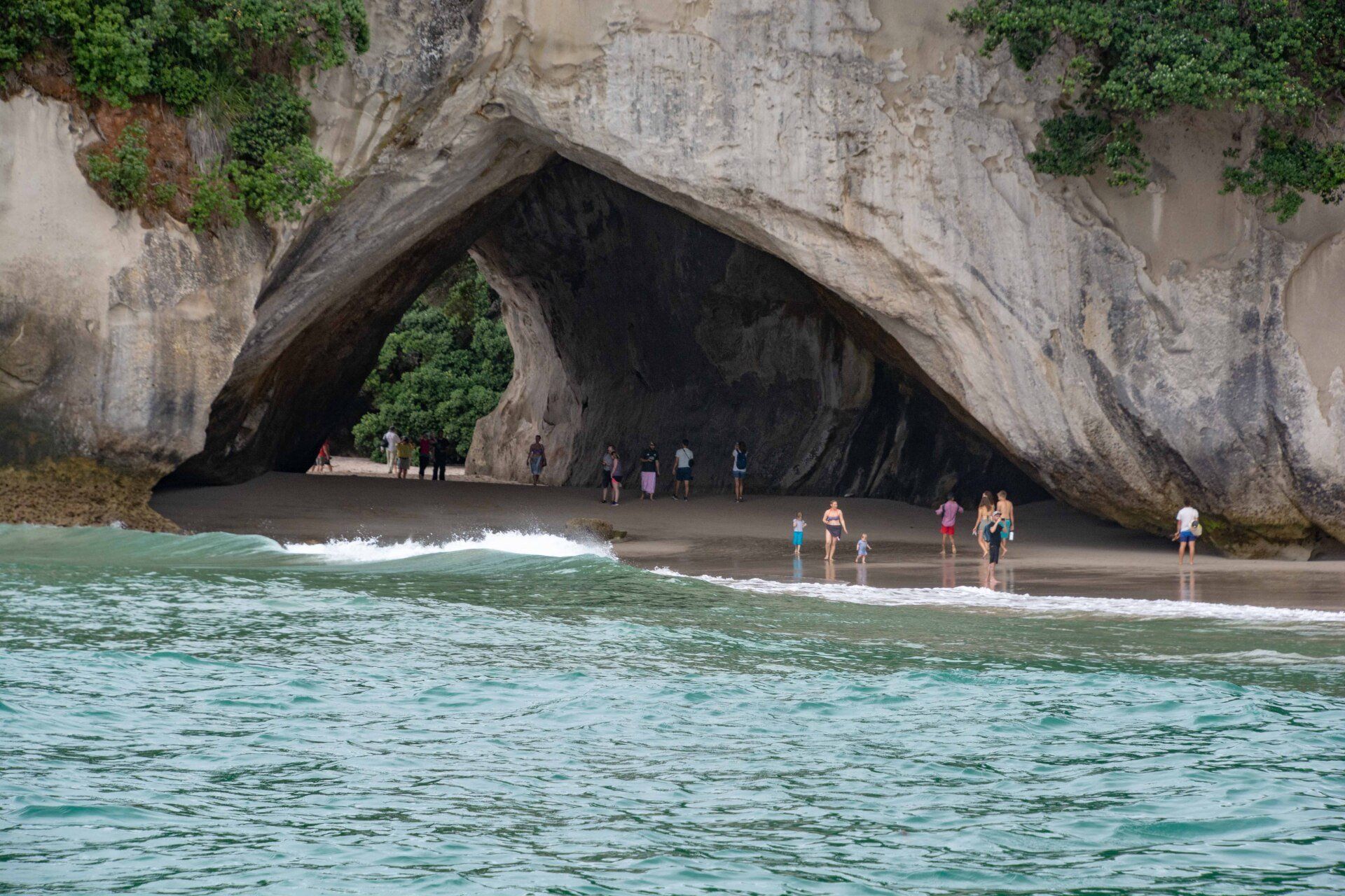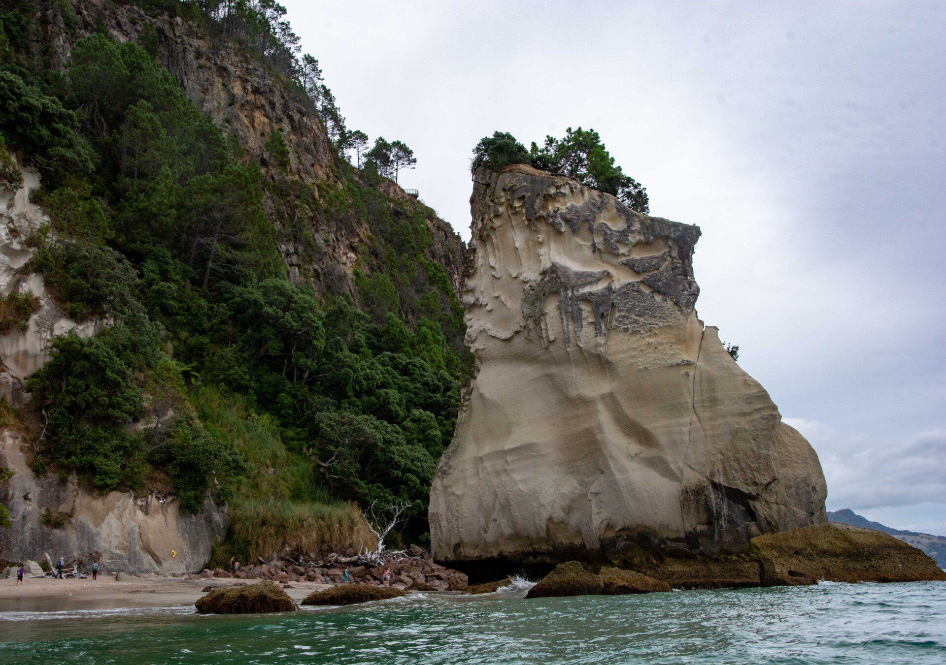 Hahei und haben dort, nach dem Besuch von Hobbiton vormittags, am gleichen Tag nachmittags noch eine Bootstour gemacht und diverse Höhlen im und am Wasser, z.B. die